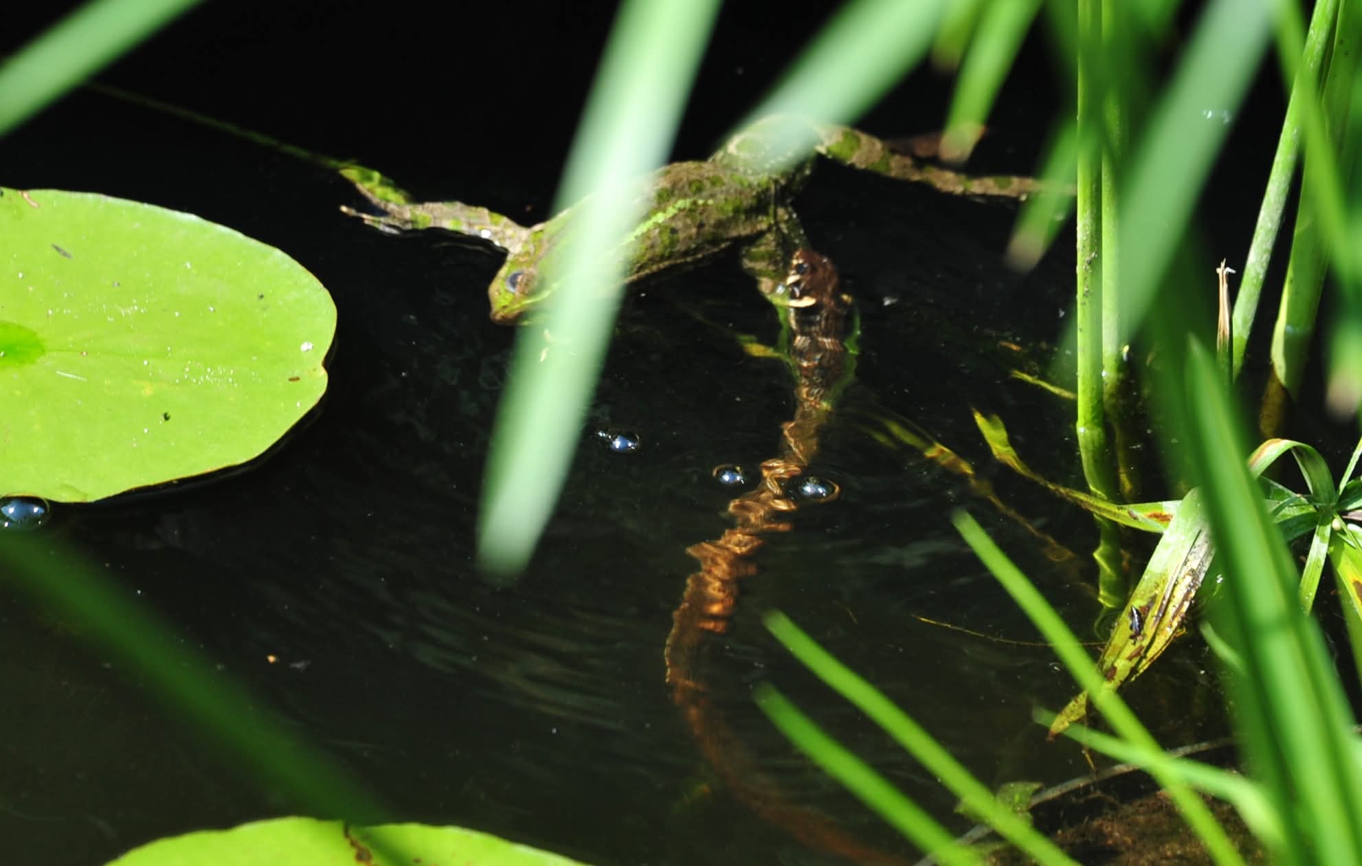 Na dwóch z nich widać żabę w żelaznym uścisku zaskrońca. Zdążyłem na sam koniec tej spektakularnej akcji. Uścisk zaskrońca okazał się jednak nie taki żelazny, a może ofiara była zbyt duża a agresor za mały i niedoświadczony? W każdym razie podczas tej wodnej szamotaniny żaba jednak wyrwała się oprawcy. A zaskroniec?