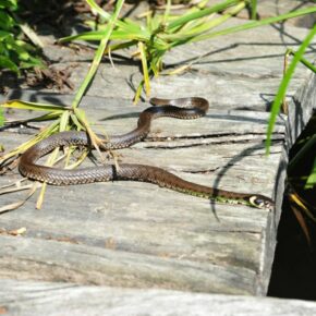 Zanim podejmę próbę ocieplania wizerunku zaskrońca, w paru słowach opiszę skąd taki pomysł. Muszę cofnąć się o rok. Podczas karmienia karpi koi, podeszło do mnie dwoje wspaniałych młodych ludzi. Zwrócili się do mnie z nietypową i niezrozumiałą wtedy prośbą. Chcieli, abym pokazał im zaskrońca. Po co? Ponieważ jedno z nich panicznie się go bało i właśnie poprzez oglądanie tego gada chciało ten lęk w sobie zwalczać. Oczywiście prośby tej spełnić nie mogłem. Zaskrońce wprawdzie w naszym parku występują, ale zobaczyć je graniczy z cudem, ponieważ jest to zupełnie dzika populacja i przed ludźmi najzwyczajniej w świecie uciekają. Zdarzenie to jednak dało mi wiele do myślenia. Zwalczanie swoich lęków poprzez oglądanie tego co nas przeraża! Może to jest jakiś sposób? Na bazie tej sytuacji rok temu opublikowałem post pt. „Nie bójmy się zaskrońca”. I teraz już wiem, że jeżeli będzie mi dane nadal pisać posty na profilu naszego arboretum, to miesiąc wrzesień będzie miesiącem zaskrońca.