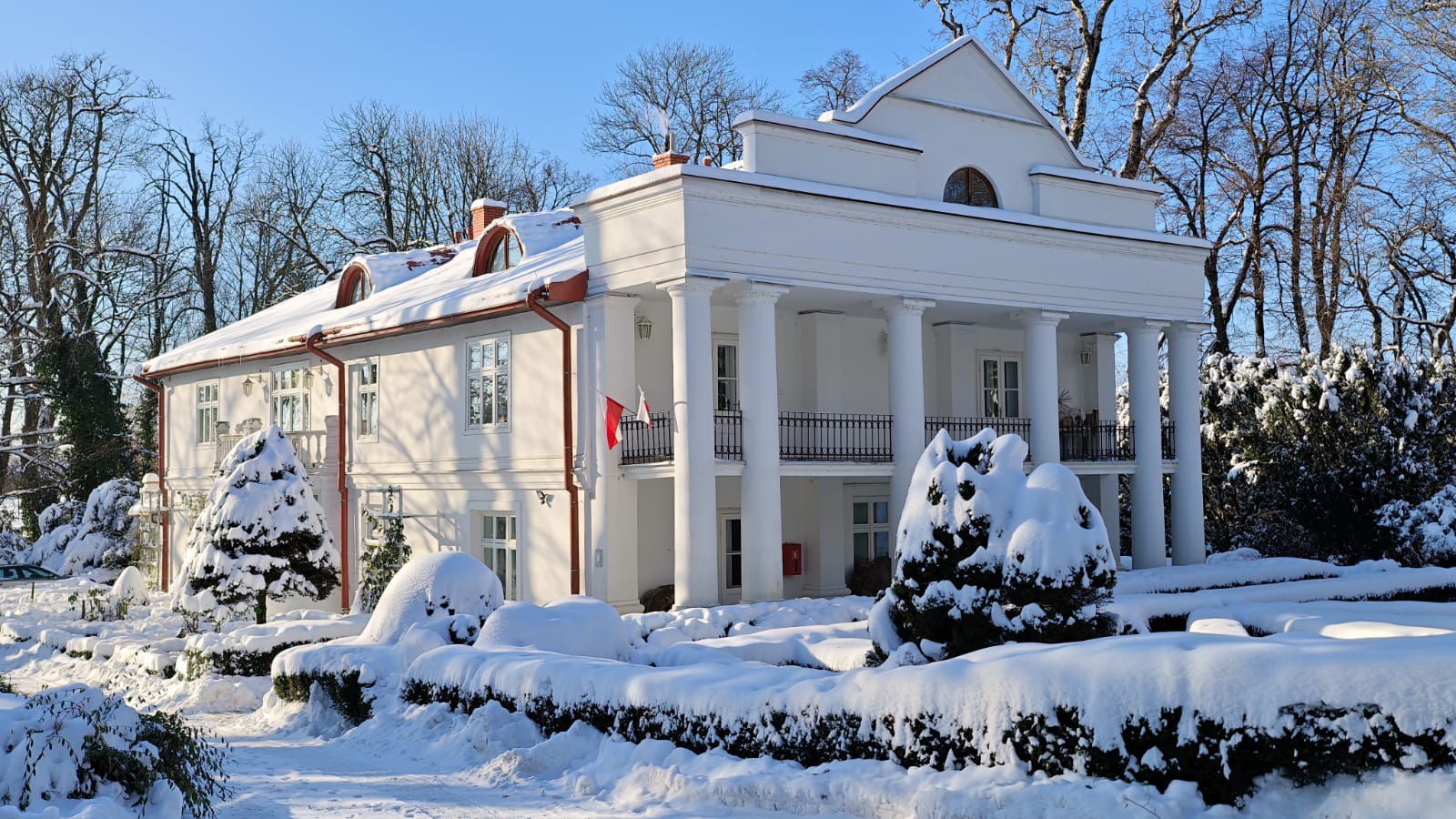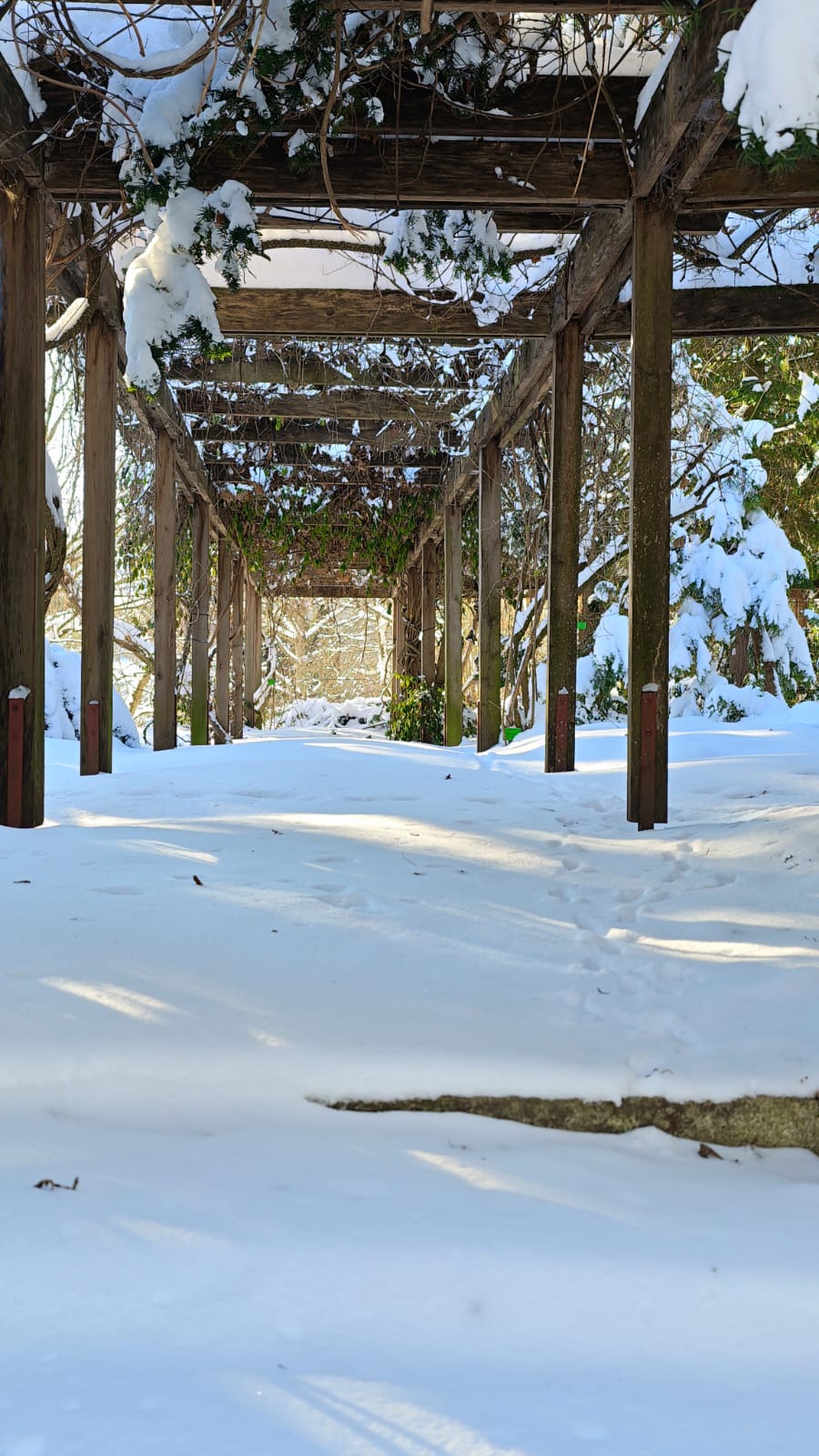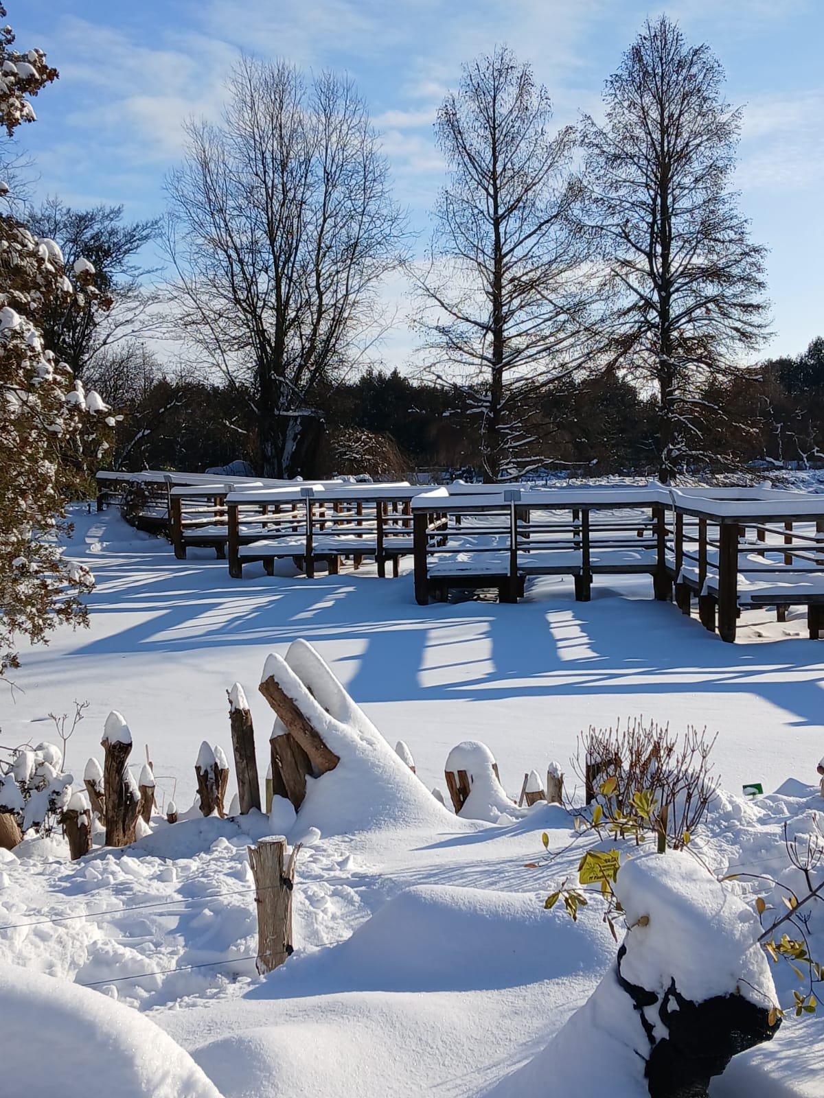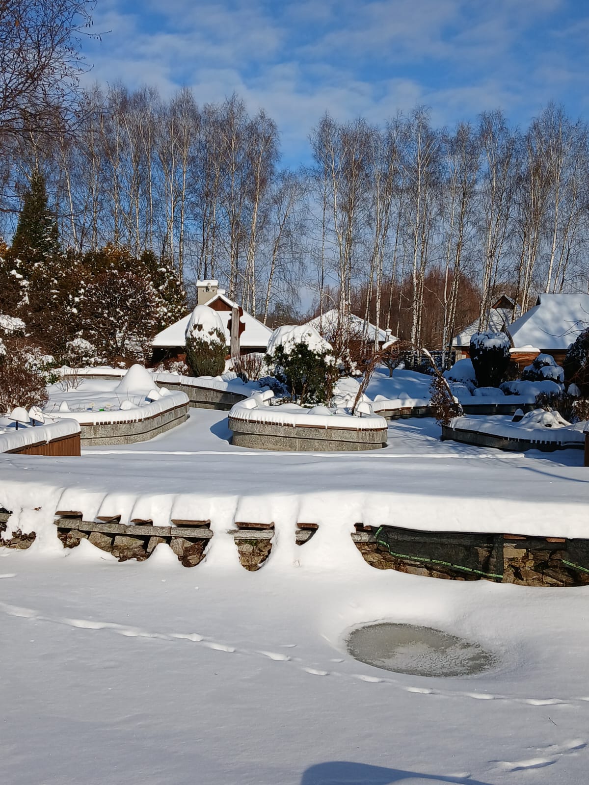 Na zewnątrz arboretum przykryte śniegiem – ciche, spokojne, jakby na chwilę zatrzymało oddech. Gałęzie rysują się na białym tle, a natura odpoczywa przed kolejnym sezonem.