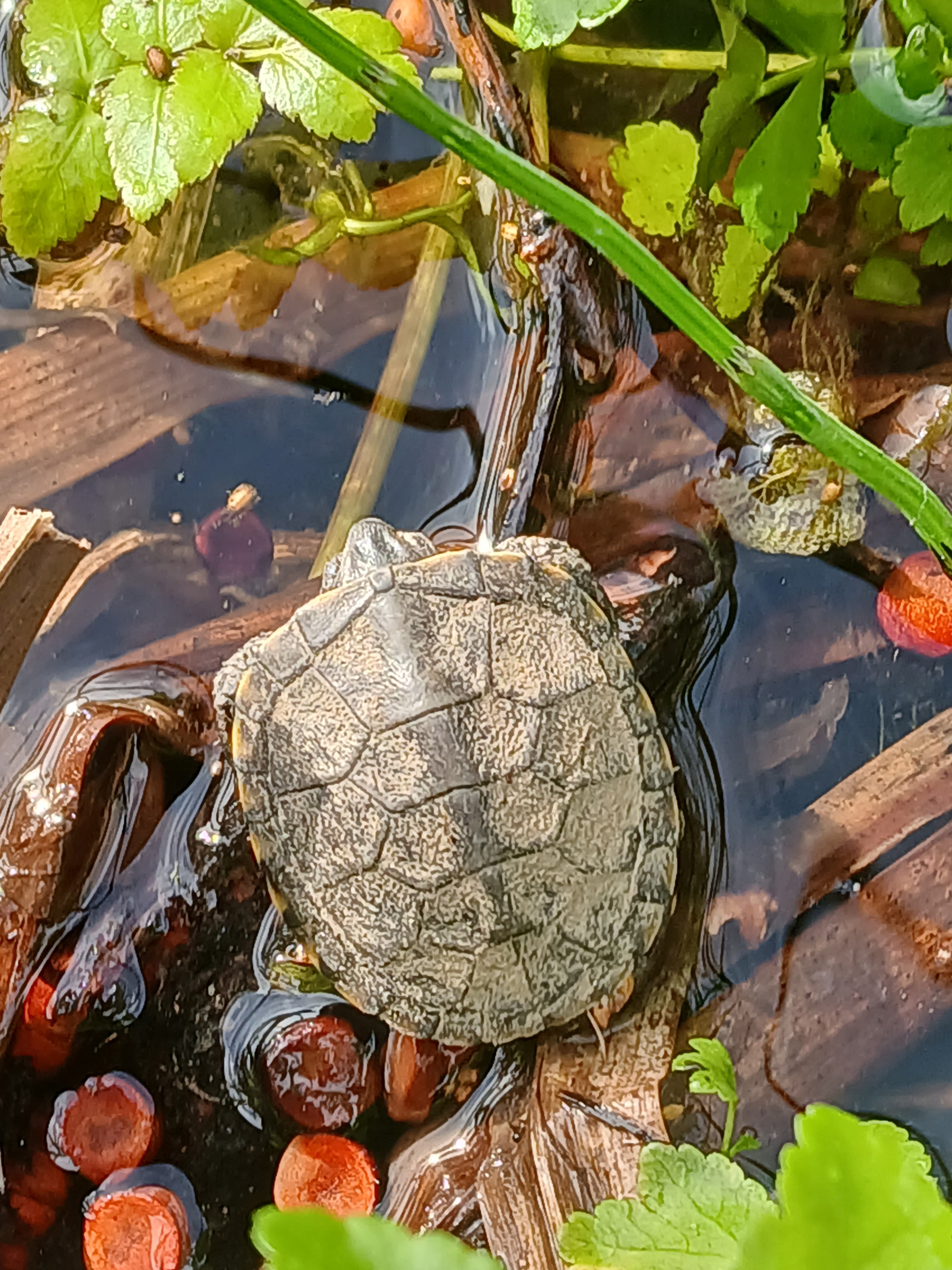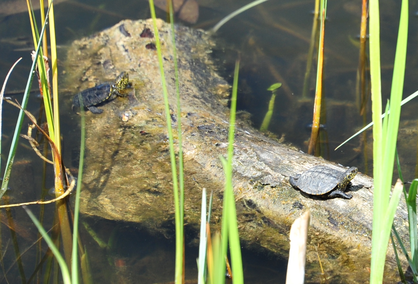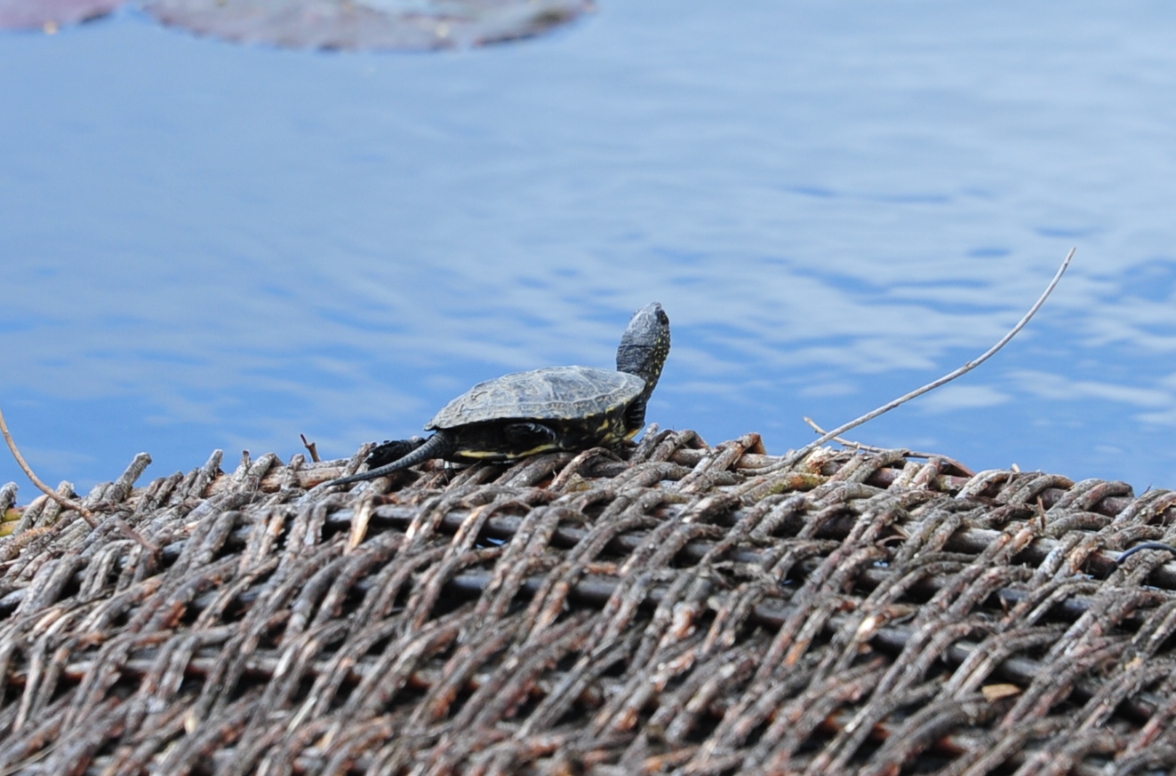 Oba te zdarzenia nastąpiły jedno po drugim, w krótkim czasie, więc chyba nie należy tego rozpatrywać w kategoriach cudu. Prawdopodobnie gdzieś na terenie parku doszło do wyklucia się z jaj takich maluchów. Pewnie wiele z nich jest w tej chwili w trakcie takiej wędrówki. Jeśli spotkają Was na swojej drodze, bardzo prosimy o zgłaszanie takich sytuacji pracownikom arboretum. Może właśnie dzięki Wam, kolejne osobniki zasilą populację żółwia błotnego w naszym parku.
